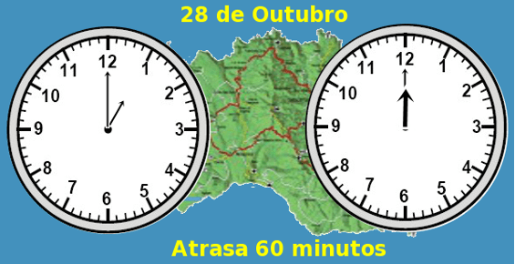 Em conformidade com a legislação, a hora legal na Região Autónoma dos Açores: